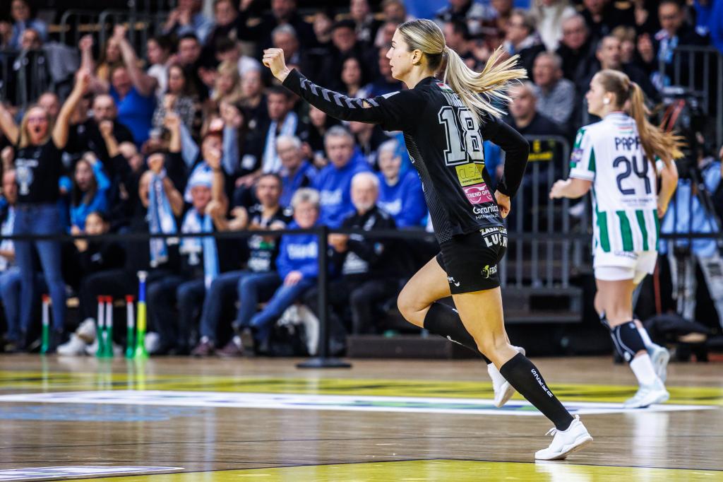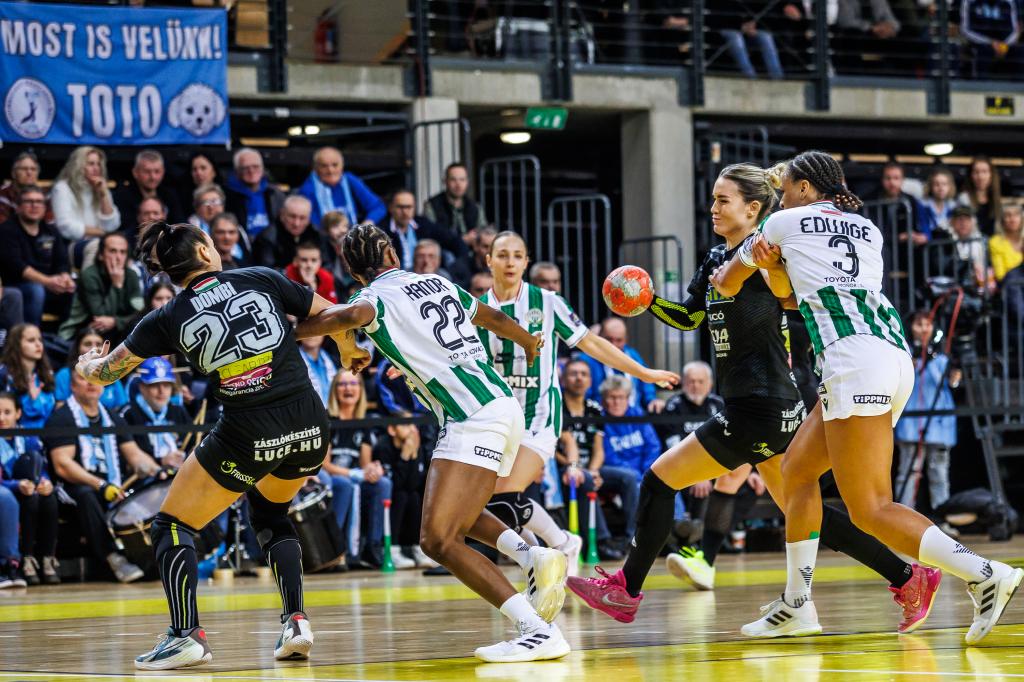 A teltházas remek atmoszféra a találkozó elején szinte doppingként hatott csapatunkra, amely lelkes, bátor és koncentrált játékkal indított és szinte uralta is az első tíz percet, 5-3. A folytatásban aztán a zöld-fehérek kíméletlenül megbüntették az elrontott ziccereinket, 5-9-es vendég vezetésnél Bo Rudgaard vezetőedző kért időt. A Fradi azonban innentől átvette a játék irányítását, a sztárcsapat jól kontrollálta a támadásainkat, 15 percig nem is tudtunk betalálni. A hosszú gólcsendet Pődör Rebeka törte meg, aki a hátralévő percekben még kétszer is eredményes volt, így az első félidő után 9-16-os állással fordultak a csapatok.